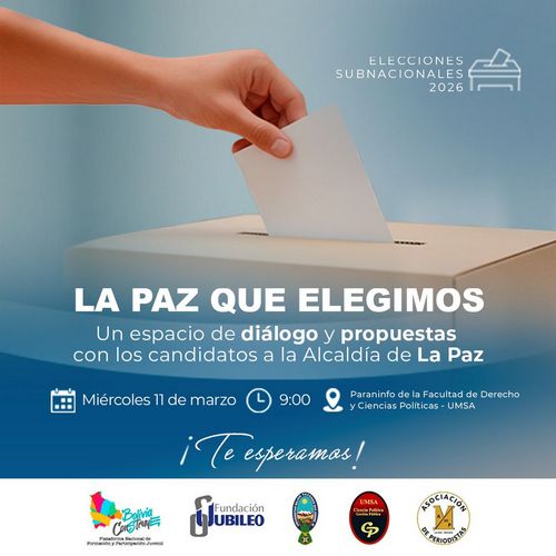 Este miércoles 11 de marzo sé parte de “LA PAZ QUE ELEGIMOS”, un espacio de diálogo con las candidaturas a la Alcaldía de La Paz.